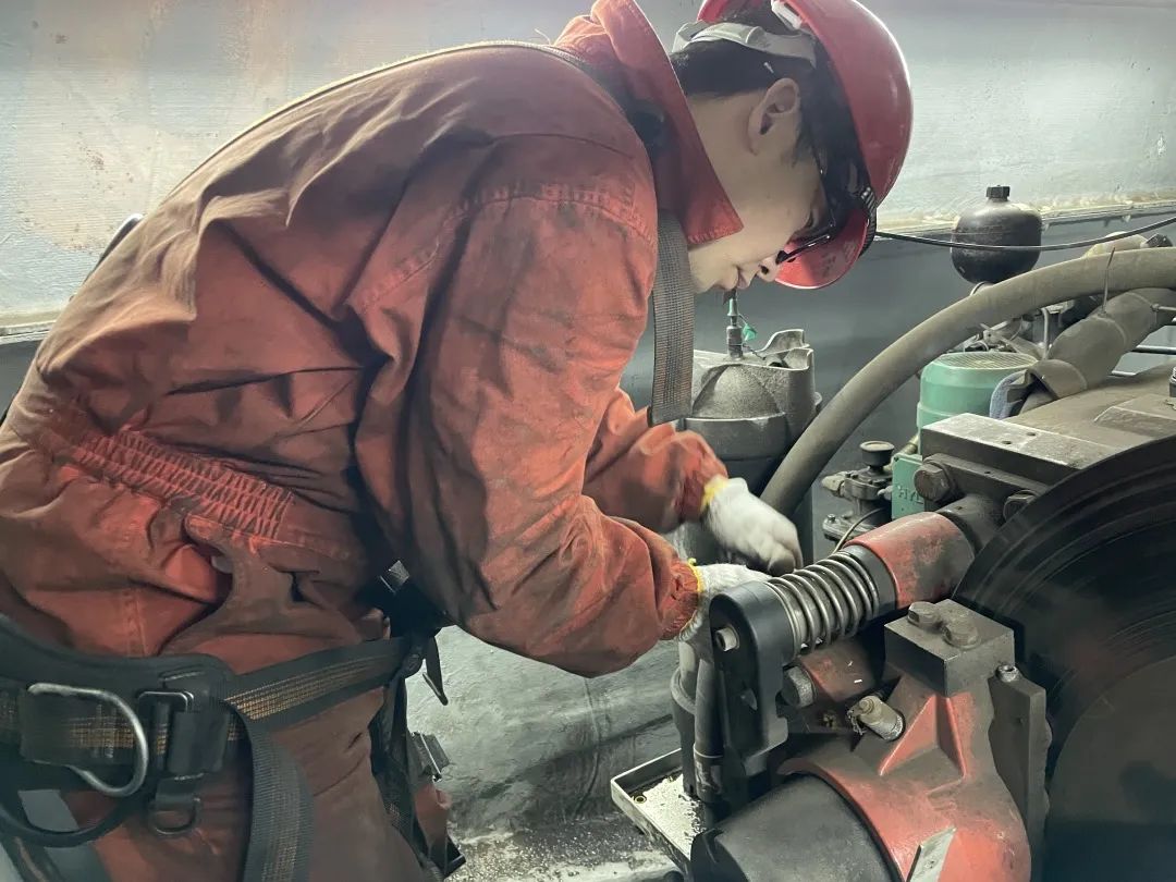 臨近春節(jié),運行人員林正杰帶領(lǐng)班組成員例行巡檢,這時監(jiān)控主機報警顯示9號風機液壓油位低、系統(tǒng)壓力低故障,經(jīng)現(xiàn)場排查后判定為高速閘漏油?!翱赡苁敲芊馊匣瘜?dǎo)致漏油,我們要馬上進行搶修”只見林正杰說完,轉(zhuǎn)身沖向設(shè)備間方向,攜帶特定維修工具與運行班組驅(qū)車前往故障點。
